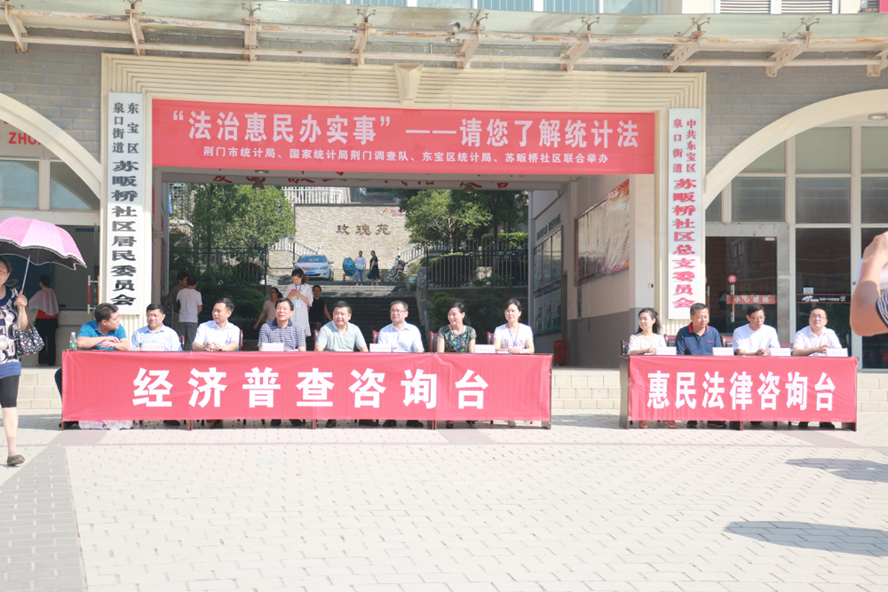 6月15日,65备用主页联合国家统计局荆门调查队、东宝区统计局、苏畈桥社区居委会,依托苏畈桥社区文化广场举办了“护航助力四经普,法治惠民办实事”主题宣传活动。本次活动通过开展统计法治咨询服务,扩大统计公开透明度,让社会各界、广大市民熟悉统计法,知道统计调查活动中的可为与不可为,共同推进依法统计,提高统计工作质量;同时,通过走进基层、贴近市民进行宣传,让大家知道自己在四经普中的责任和义务,自觉配合普查机构、普查员做好普查工作,为四经普顺利开展营造浓厚氛围。